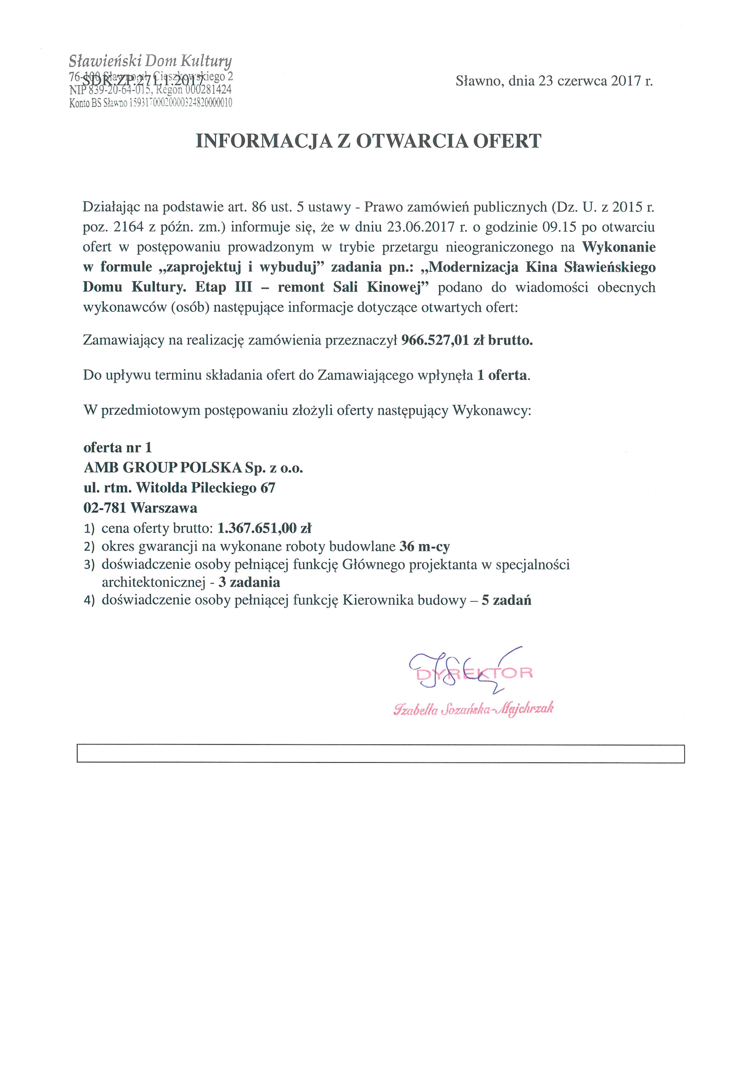 Informacja z otwarcia ofert